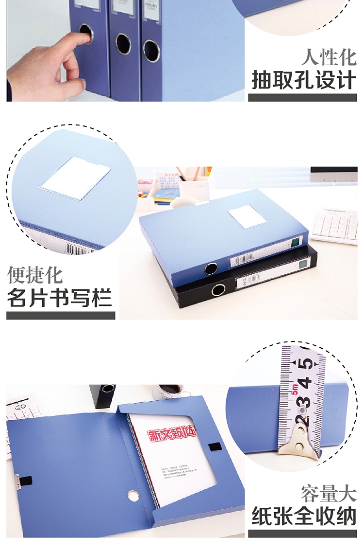 加厚A4粘扣檔案盒塑料文件夾資料收納文件盒 背寬35mm 辦公用品 藍(lán)色