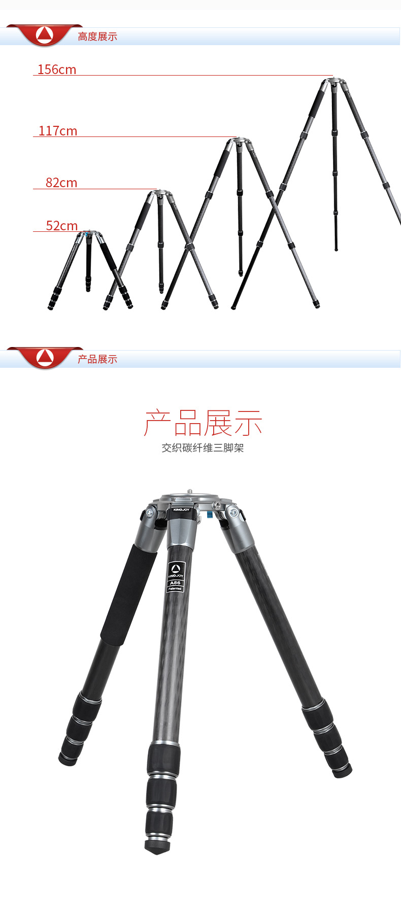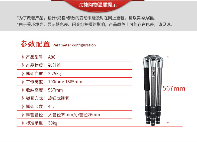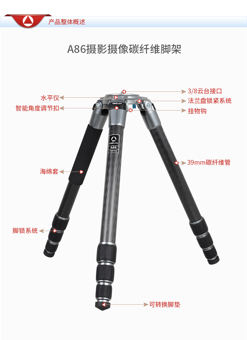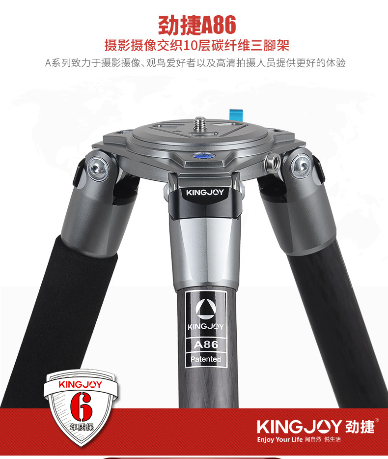勁捷三腳架 A86 長焦角架單反攝影攝像無中軸碳纖維 黑色 單位:套長焦角架單反攝影攝像無中軸碳纖維 黑色 單位:套