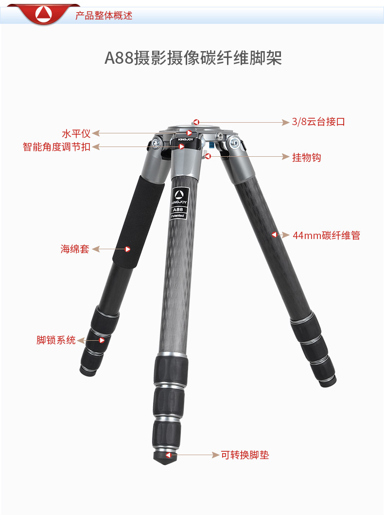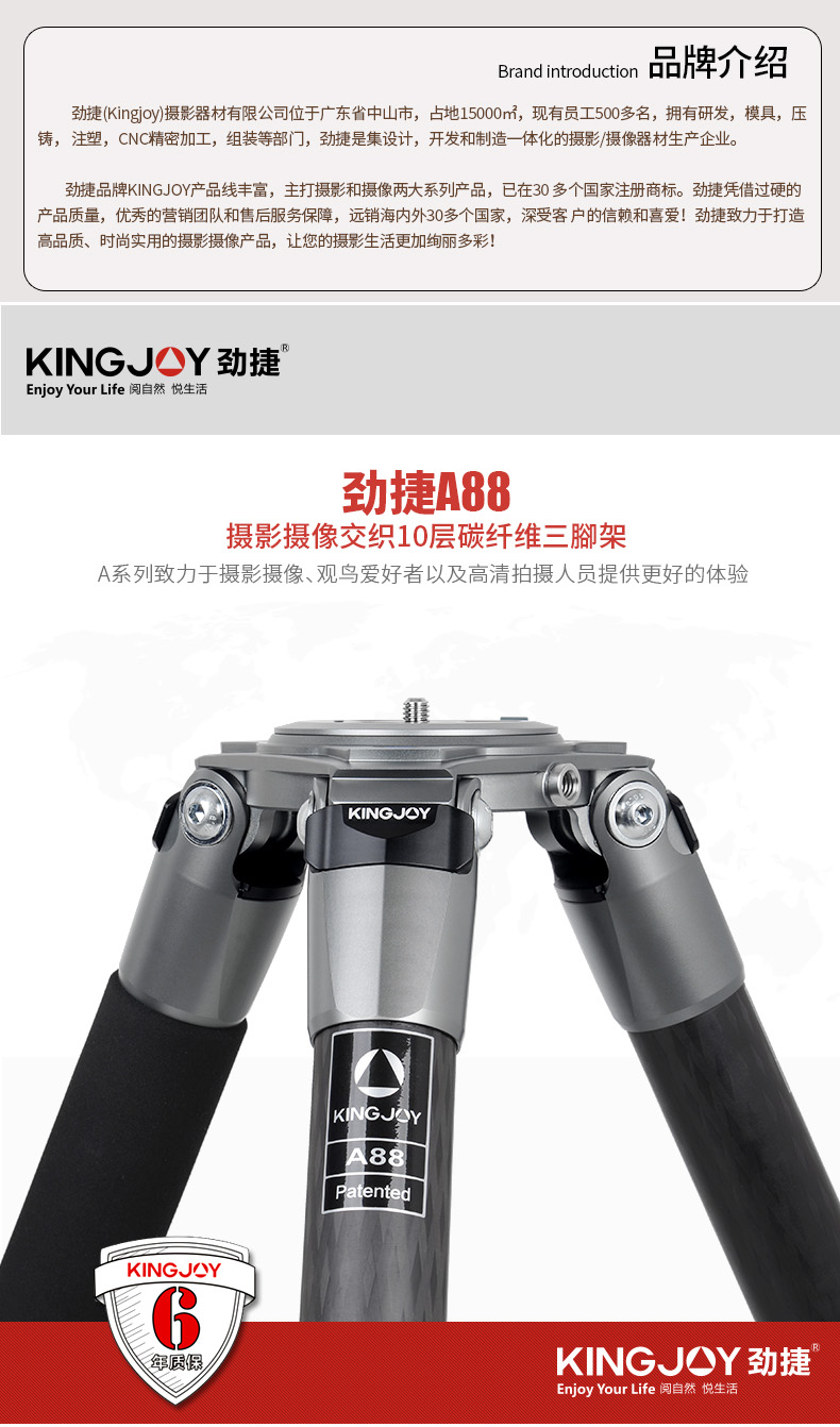 勁捷三腳架 A88 長焦角架單反攝影攝像無中軸碳纖維 黑色 單位:套