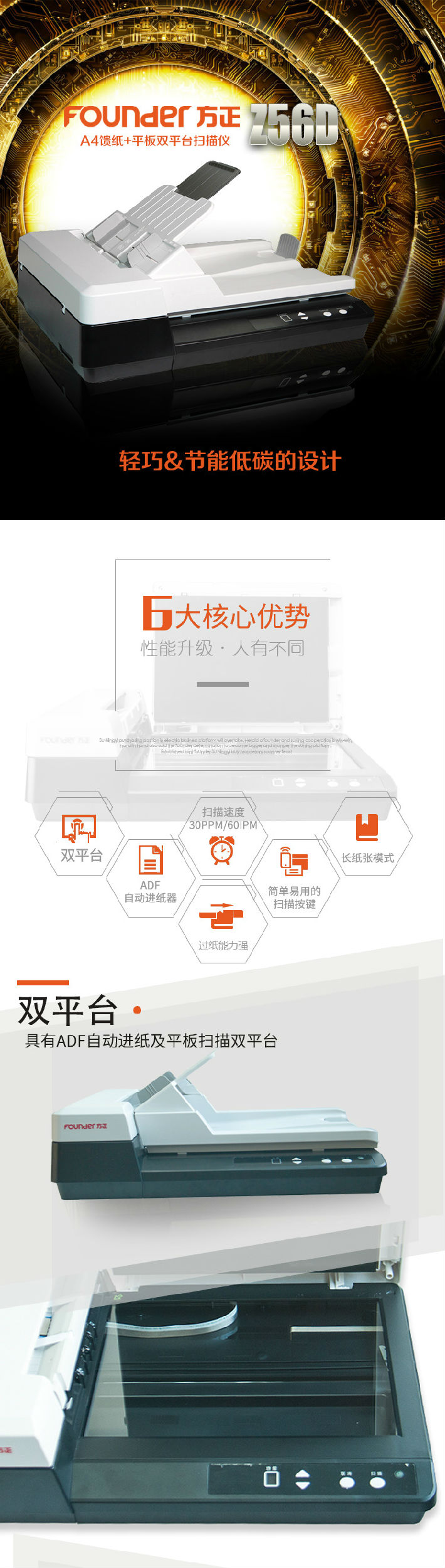 方正掃描儀 Z56D A4彩色高速雙面自動(dòng)進(jìn)紙文掃描儀 單位:臺(tái)