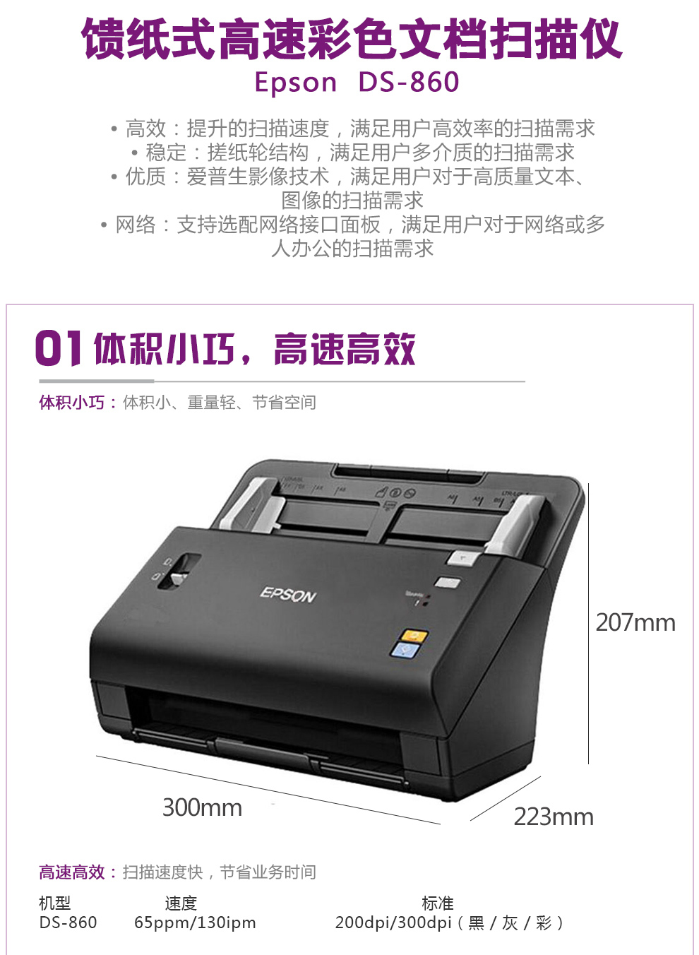 愛普生掃描儀 DS-860 高速饋紙式A4彩色文檔自動連續(xù)雙面掃描儀 單位:臺