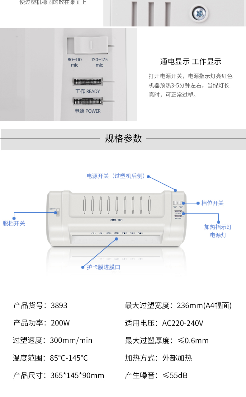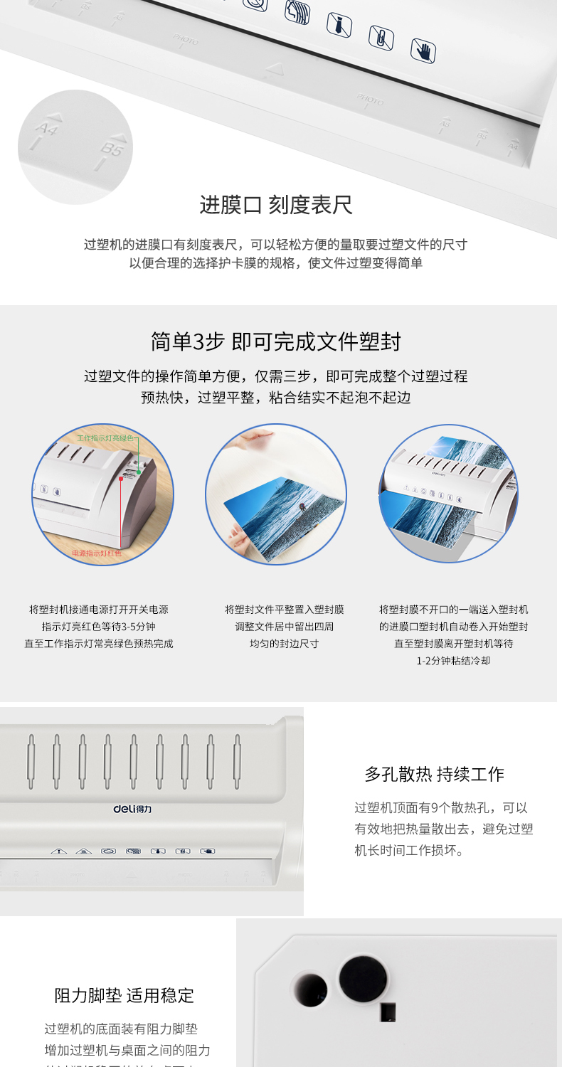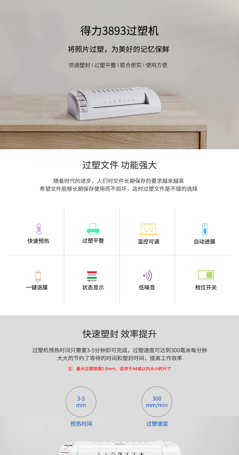 得力塑封機 3893 A4簡潔時尚靜音型照片塑封機 單位:臺