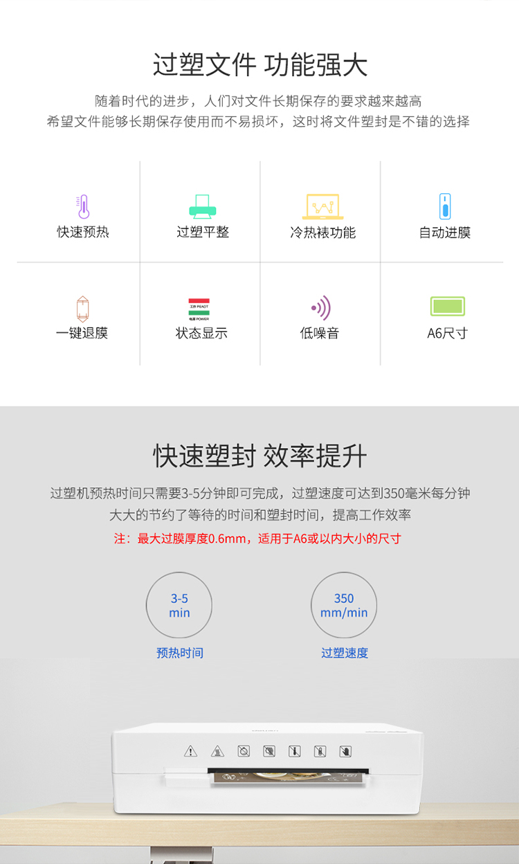 得力塑封機 2897 A6以內(nèi)照片過塑機迷你 單位:臺