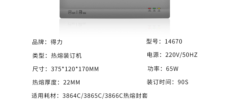 得力熱熔裝訂機 14670無線熱熔塑膠封套裝訂機 單位:臺