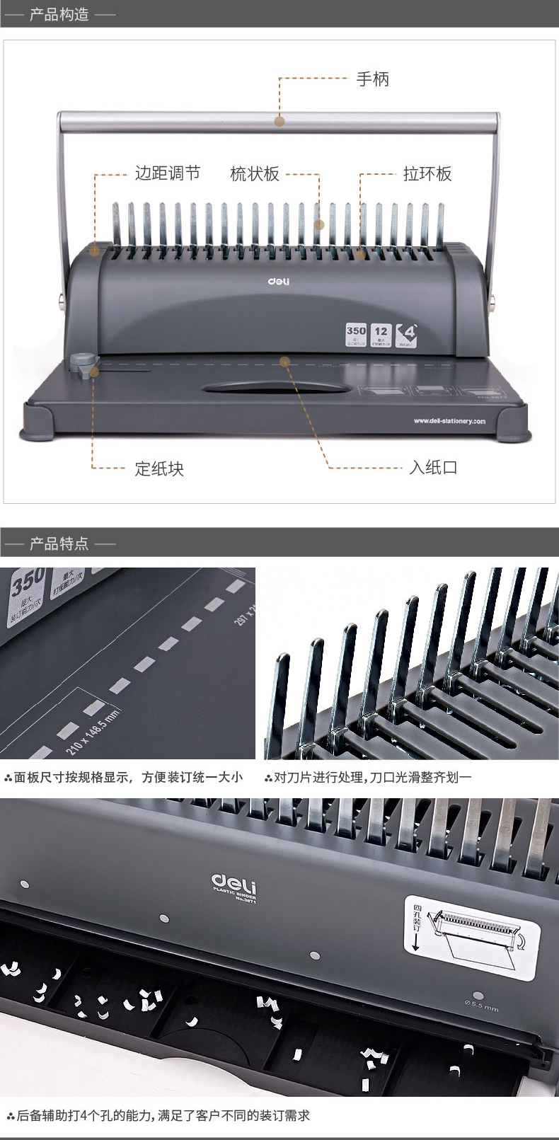 得力 3871 梳式裝訂機(jī) 單位:臺(tái)