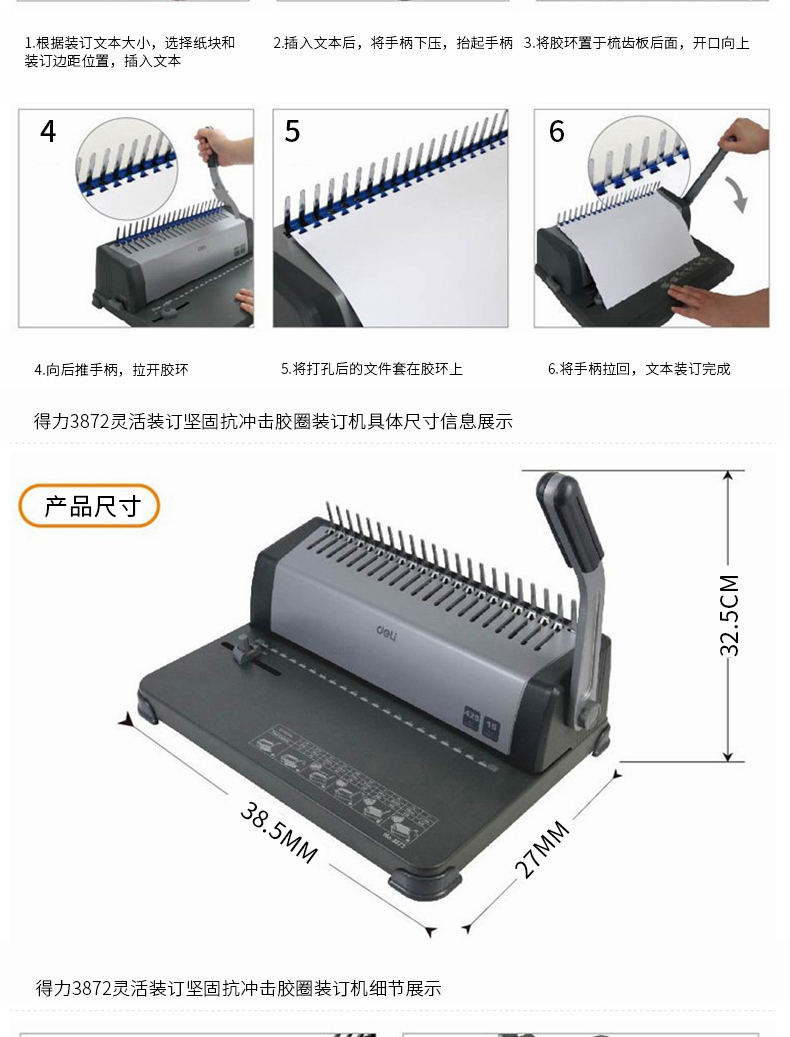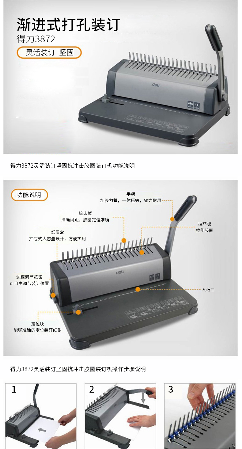 得力 3872 梳式文件打孔器21孔(灰) 單位:臺(tái)