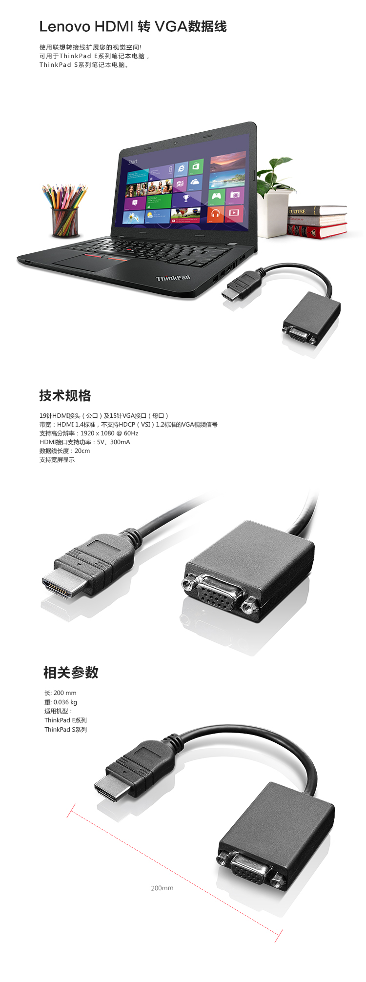 聯(lián)想(Lenovo) 原裝筆記本轉(zhuǎn)接頭 轉(zhuǎn)換器轉(zhuǎn)接線 0B47069 單個裝