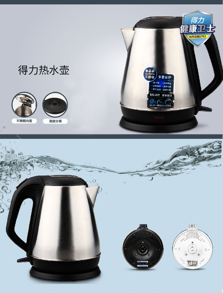 得力熱水壺 0763 1.5L不銹鋼自動斷電熱水壺 單位:個