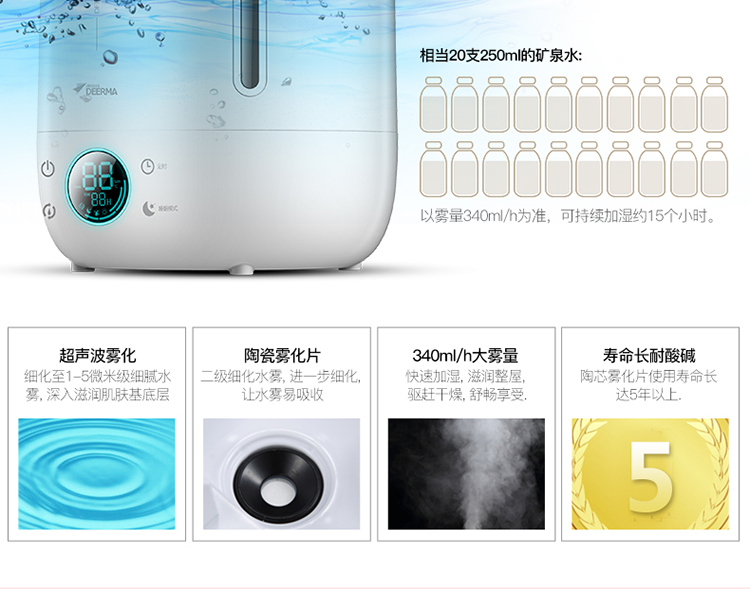 5L大容量 恒濕感溫 家用臥室靜音迷你辦公室香薰加濕 DEM-F500(升級版)