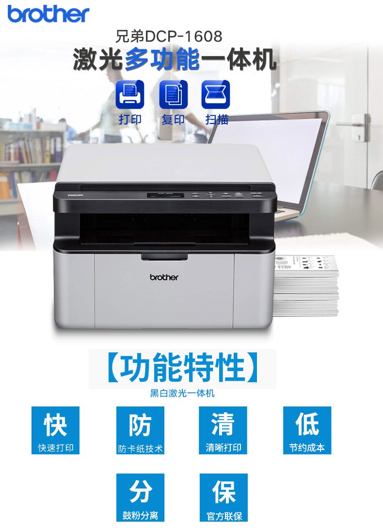兄弟多功能一體機(jī) DCP-1608 黑白激光多 單位:臺(tái)