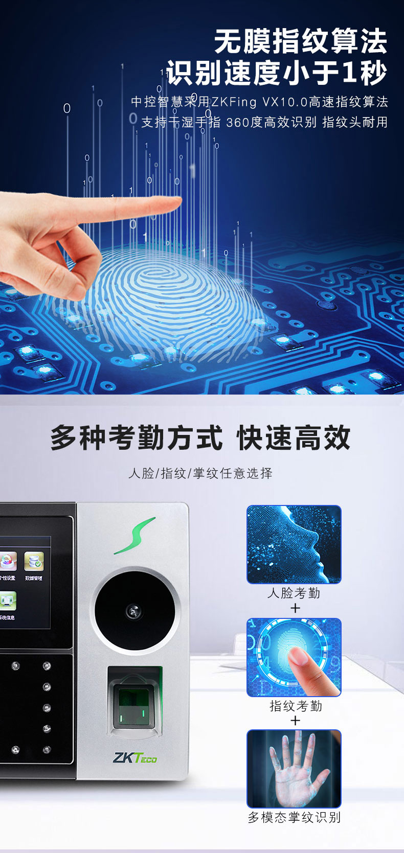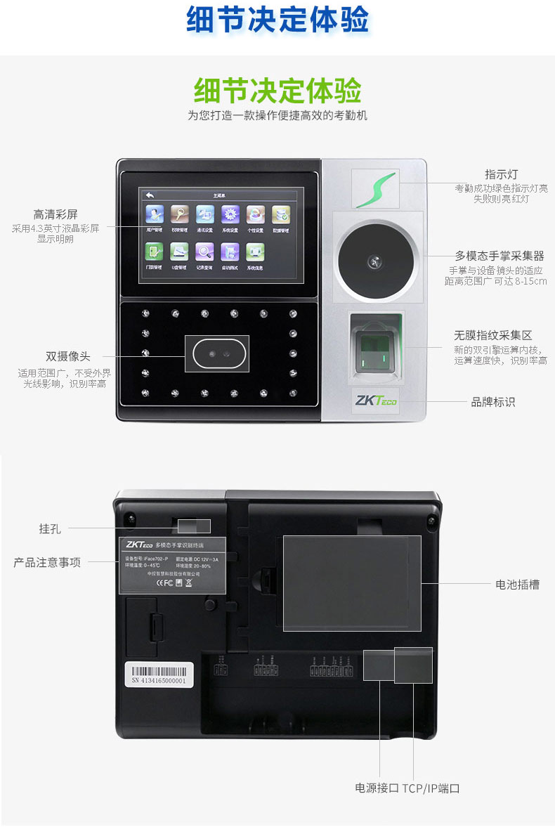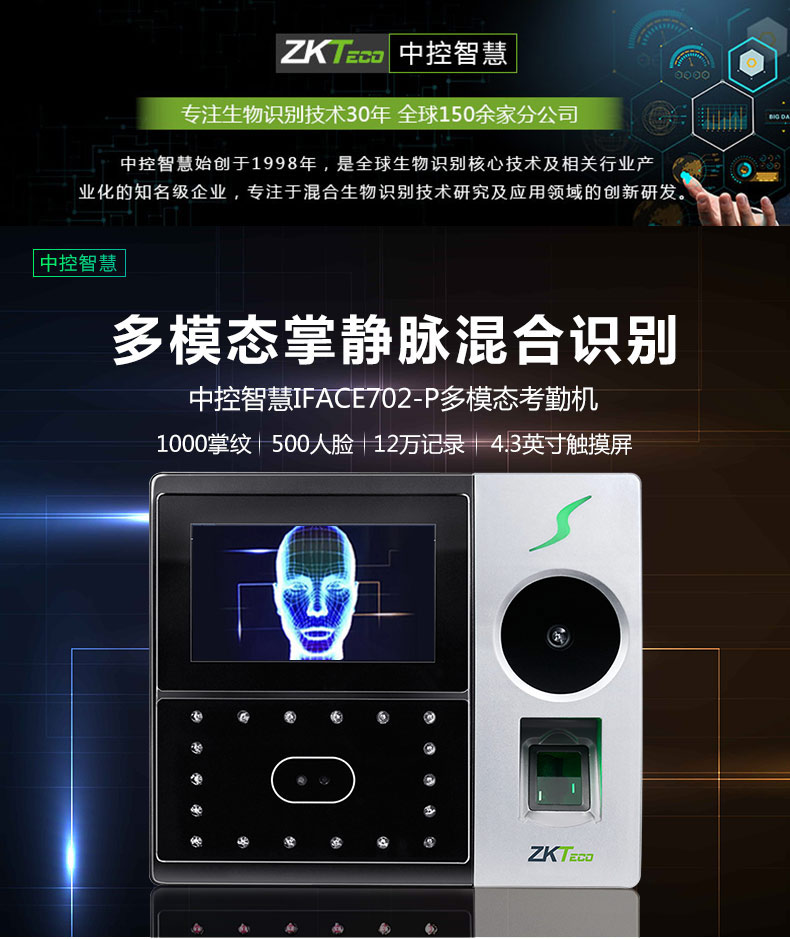 中控智慧考勤機(jī) iFace702-P 人臉指紋掌靜脈混合識別考勤機(jī) 單位:臺