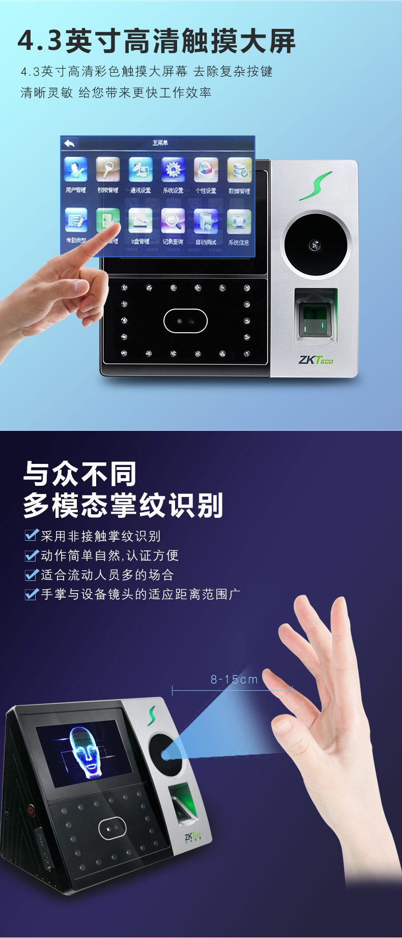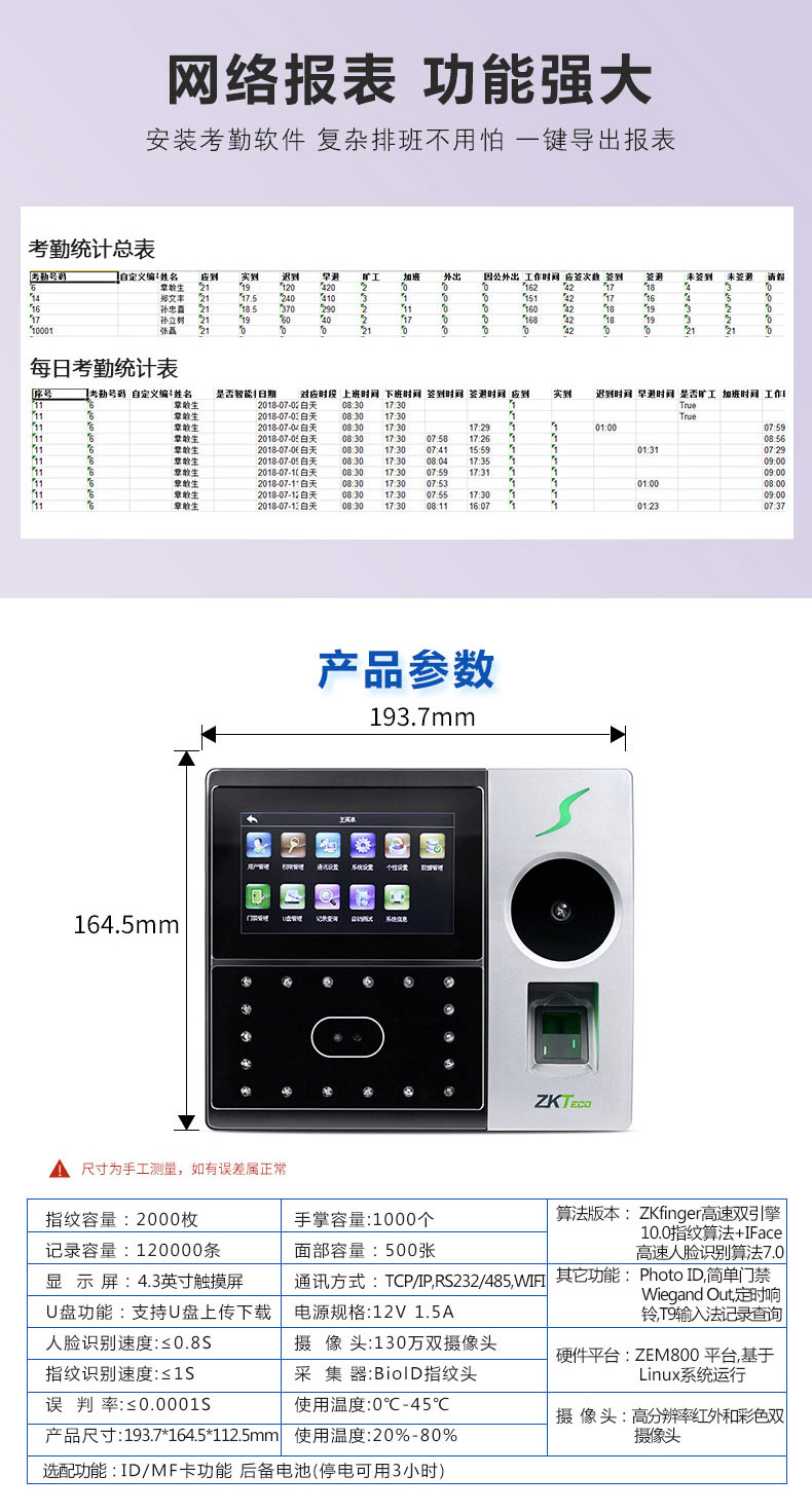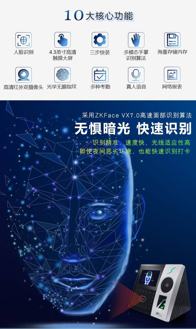 中控智慧考勤機(jī) iFace702-P 人臉指紋掌靜脈混合識別考勤機(jī) 單位:臺