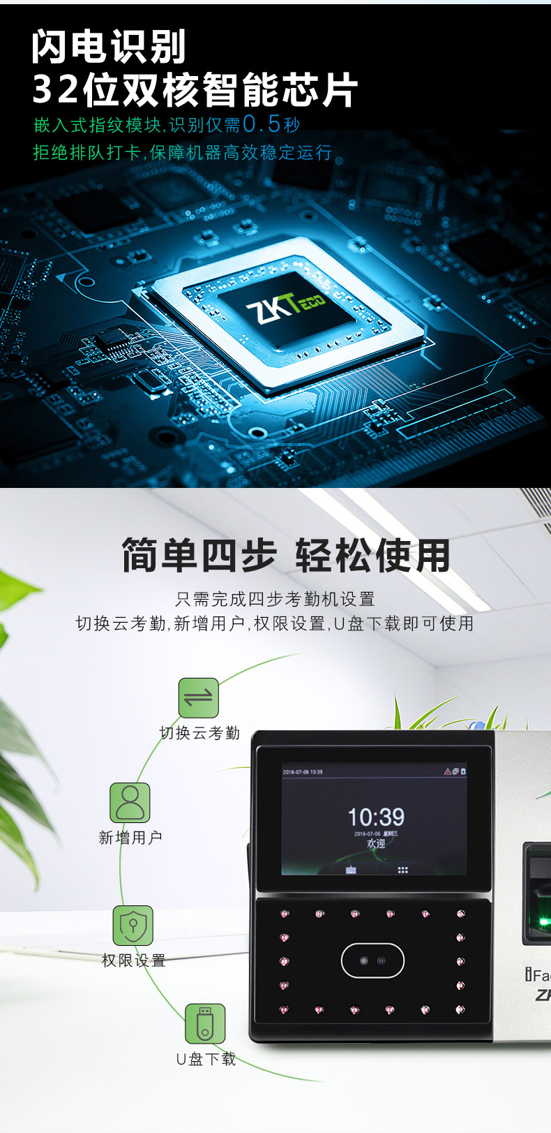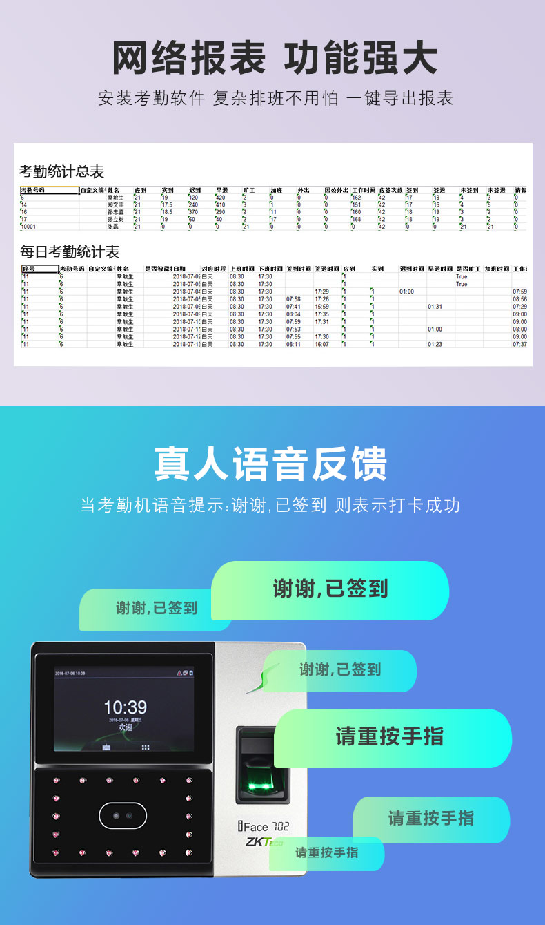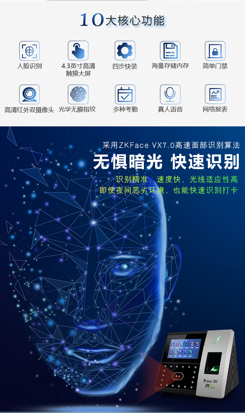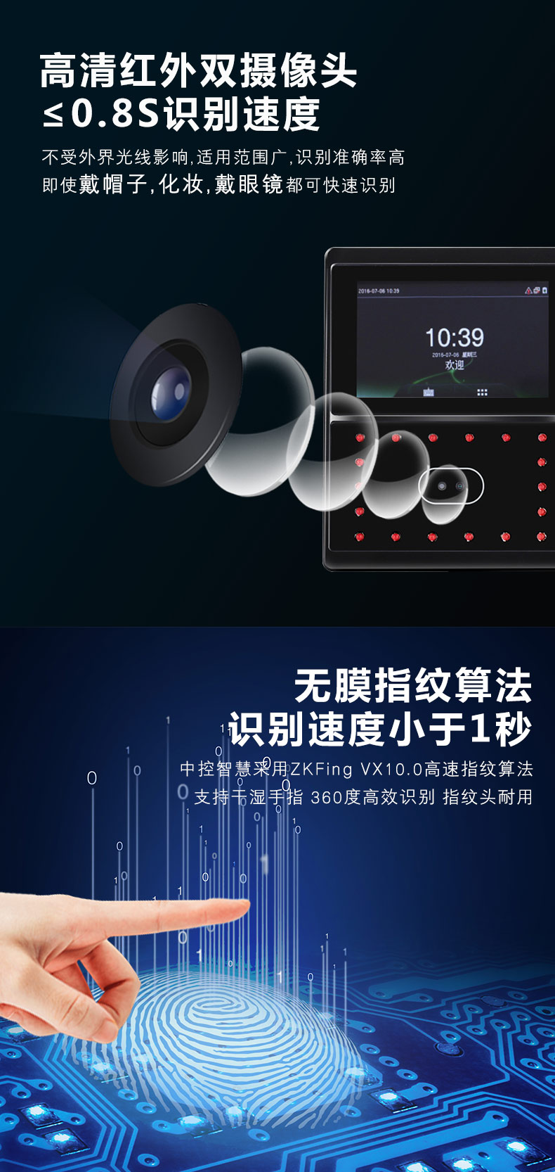 中控智慧考勤機(jī) iFace702 人臉指紋考勤機(jī) 觸屏操控門禁一體機(jī) 單位:臺(tái)