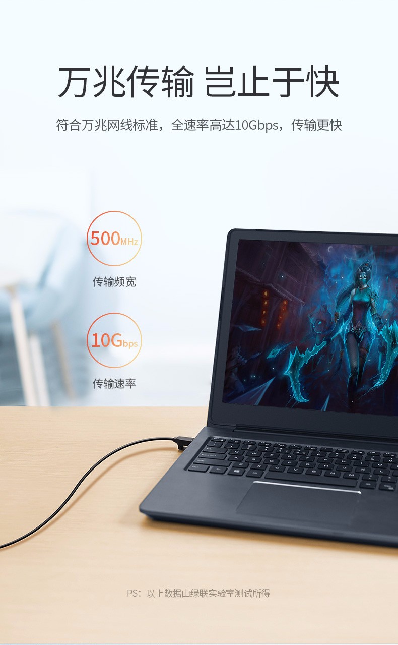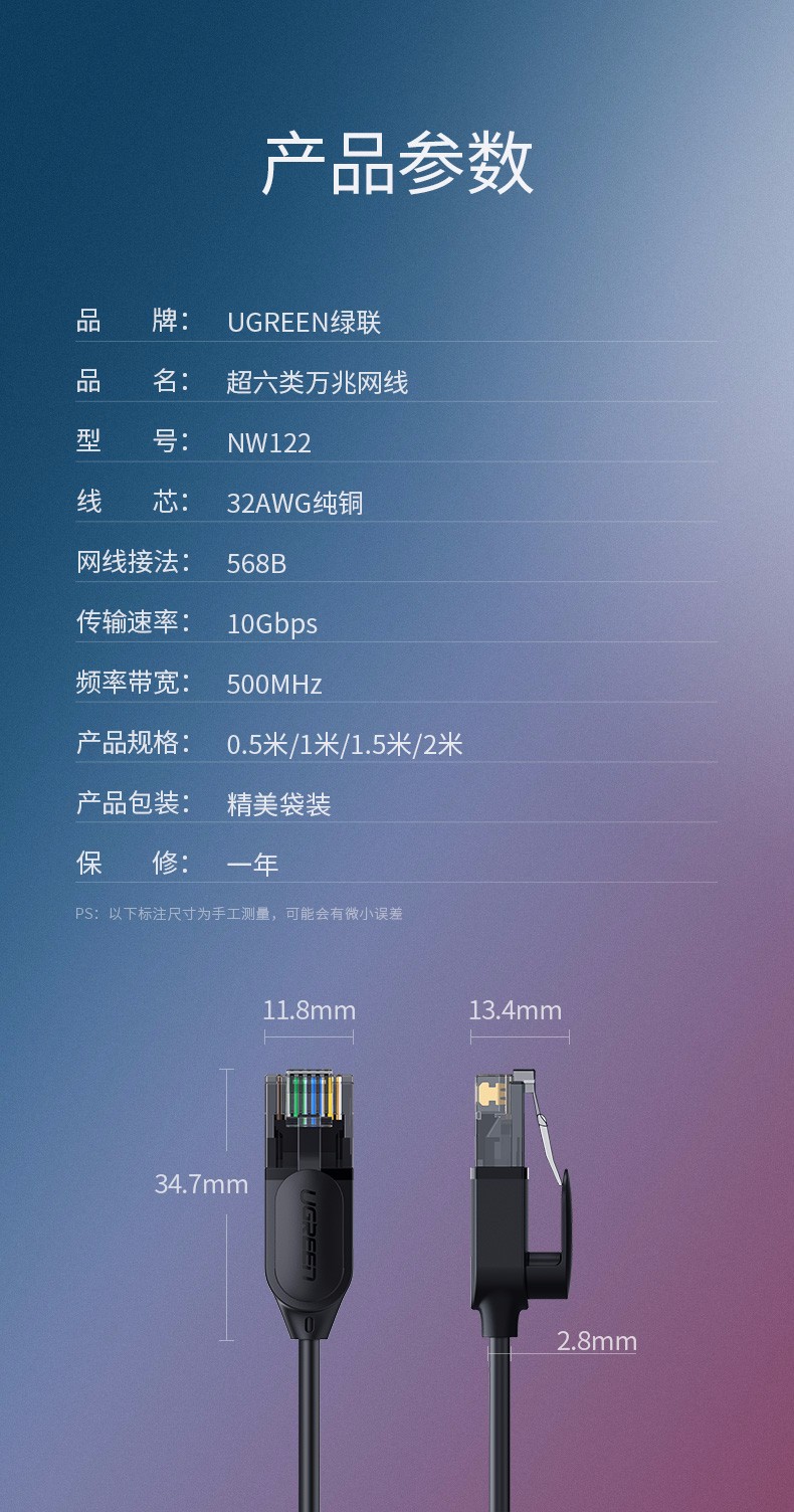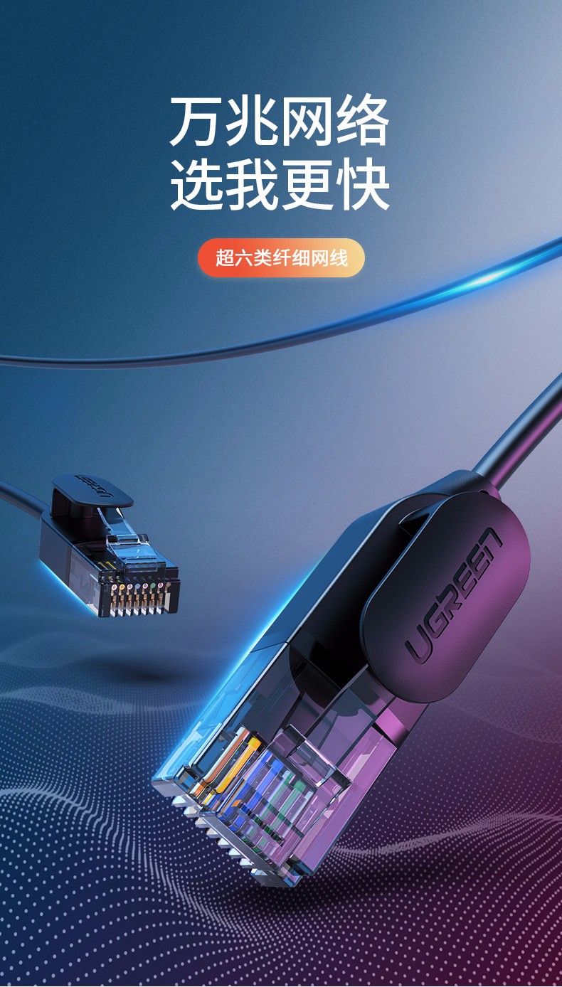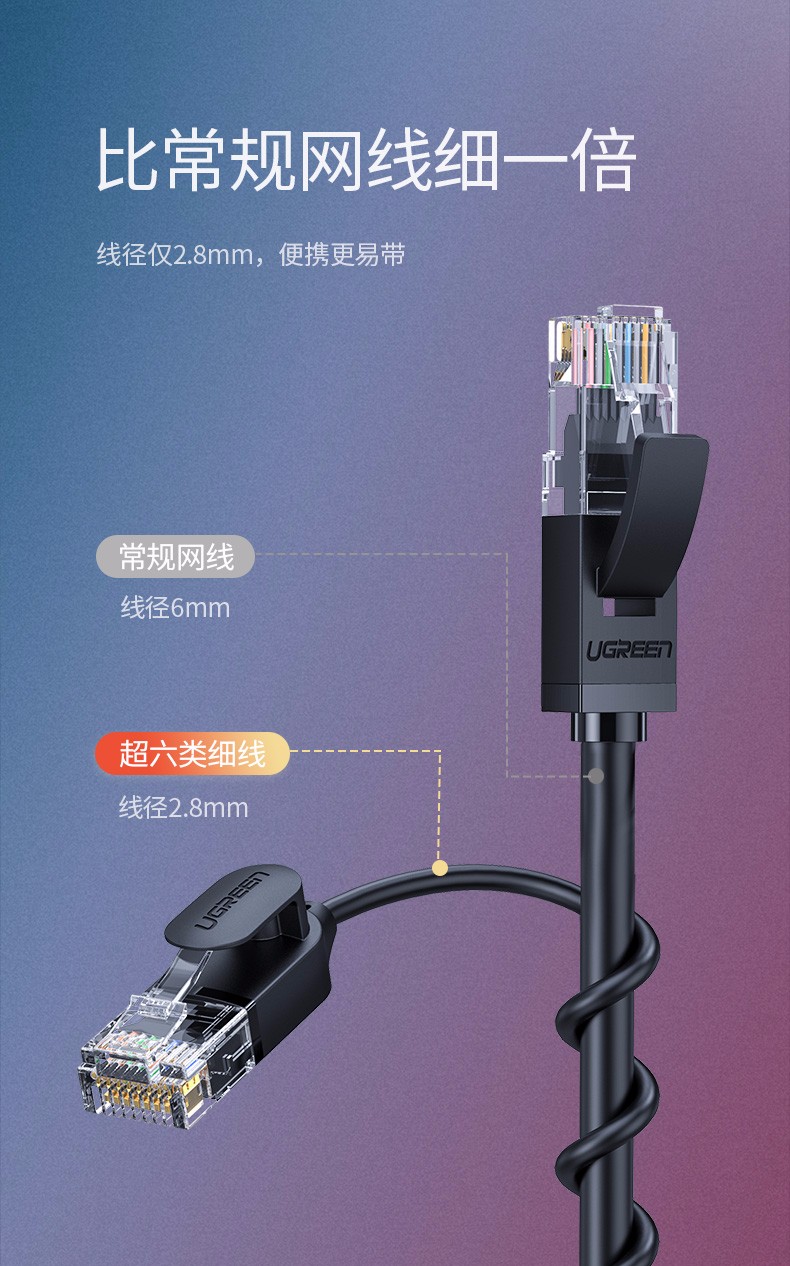 綠聯(lián)網(wǎng)線 NW122 超六類萬兆網(wǎng)線細(xì)線 CAT6A類純銅鍍金八芯雙絞非屏蔽網(wǎng)絡(luò)跳線 3米 單位:根