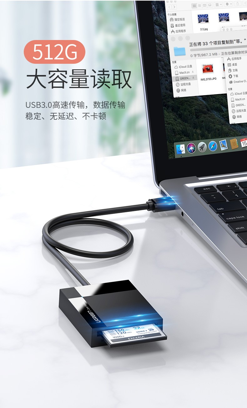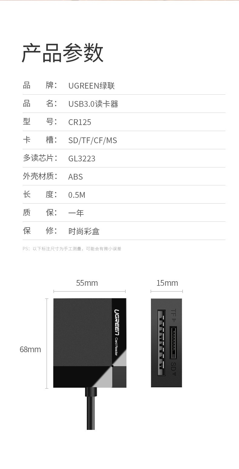 綠聯(lián)讀卡器 CR125 多功能USB3.0高速 1米 黑色 單位:個
