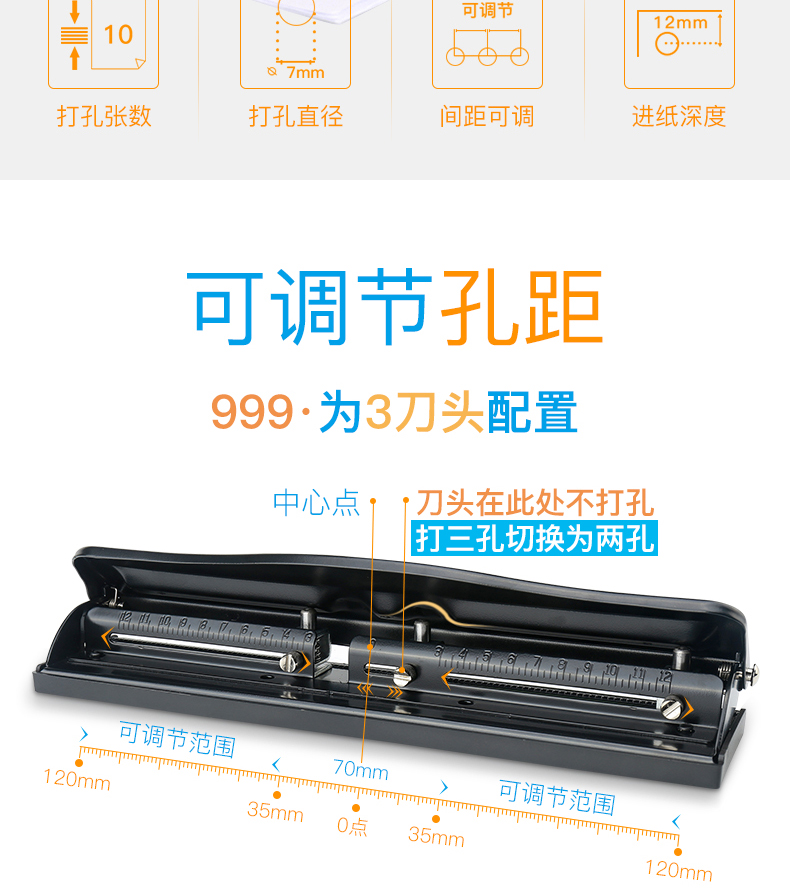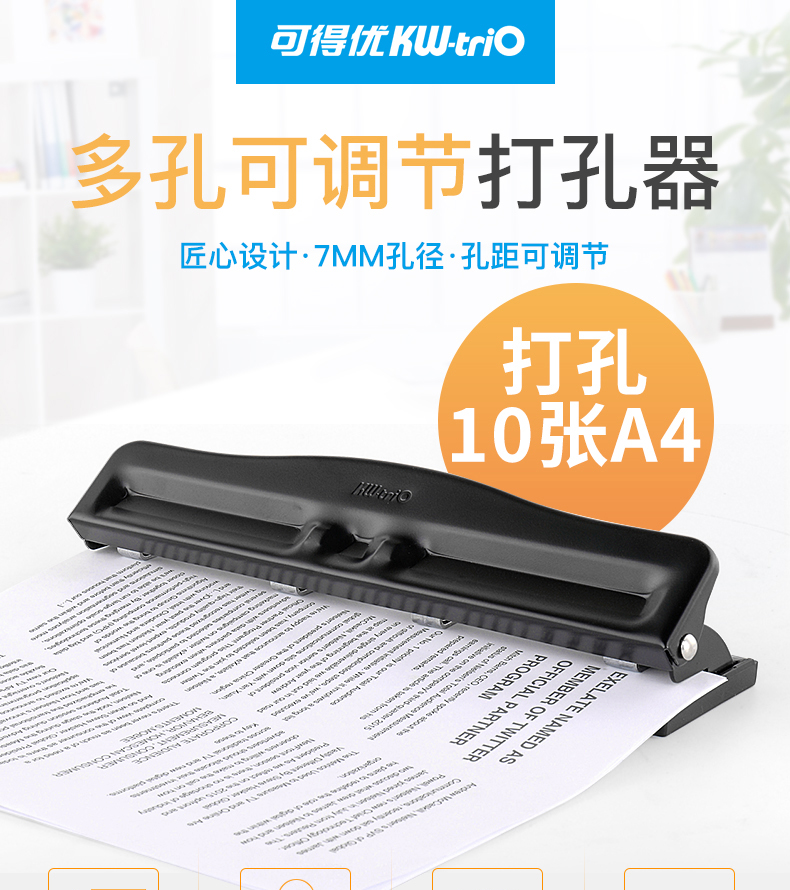 3孔可調(diào)式打孔機(jī) 打洞器打孔器 多孔打孔機(jī) 可打30張 顏色隨機(jī) 1個(gè)