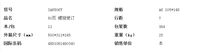 渡邊線圈本 SA6506Y A6 50頁豎翻螺旋線圈本 單位:12本/包