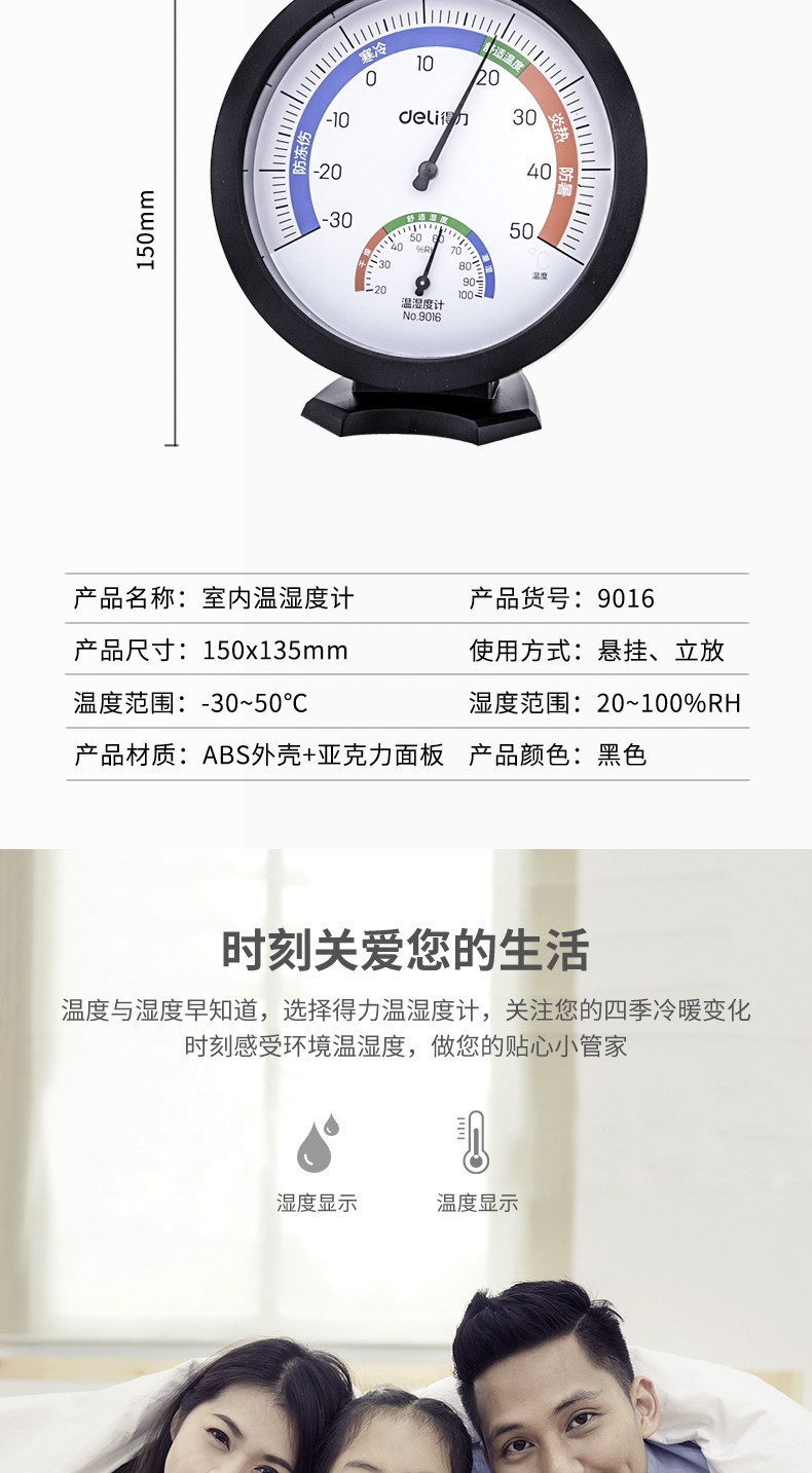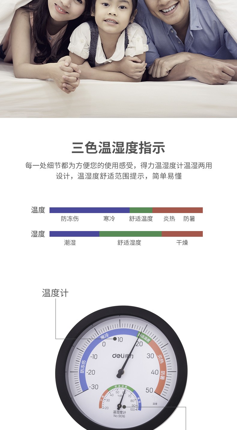 得力(deli)9016 室內(nèi)外溫濕度計家用溫度計可懸掛可擺放有底座溫度計顏色隨機