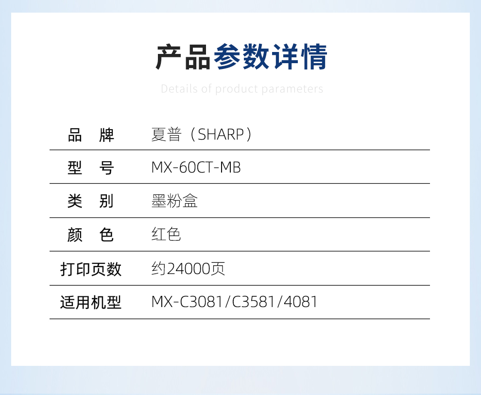 夏普粉盒 MX-60CT-MB 紅色粉盒 適用于MX-C3081/C3581/4081 單位:支