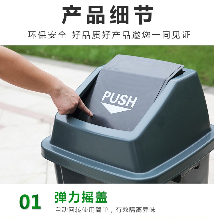 樸廚(PUCHU)60L長(zhǎng)方形搖蓋 灰色 其他垃圾分類垃圾桶帶蓋 飯店餐飲可回收廚余環(huán)衛(wèi)有害戶外四分類 單個(gè)裝