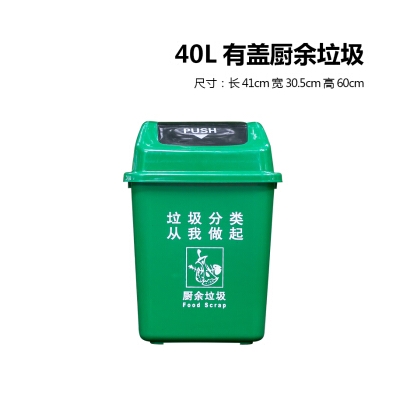 古達 40L搖蓋 綠色 廚余垃圾分類垃圾桶帶蓋 飯店餐飲可回收廚余環(huán)衛(wèi)有害戶外四分類 單個裝