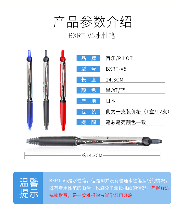 百樂 BXRT-V5 0.5mm 中性筆按動水筆 藍色 單支裝