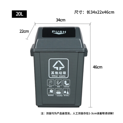 納麗雅 20L搖蓋 灰色 其他垃圾分類垃圾桶帶蓋 飯店餐飲可回收廚余環(huán)衛(wèi)有害戶外四分類 單個(gè)裝