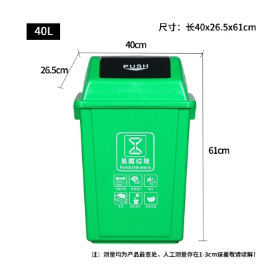 納麗雅 40L搖蓋 綠色 廚余垃圾分類垃圾桶帶蓋 飯店餐飲可回收廚余環(huán)衛(wèi)有害戶外四分類 單個裝