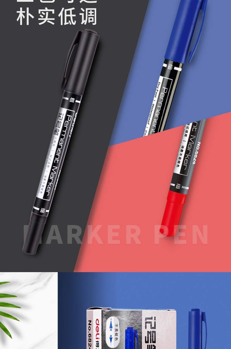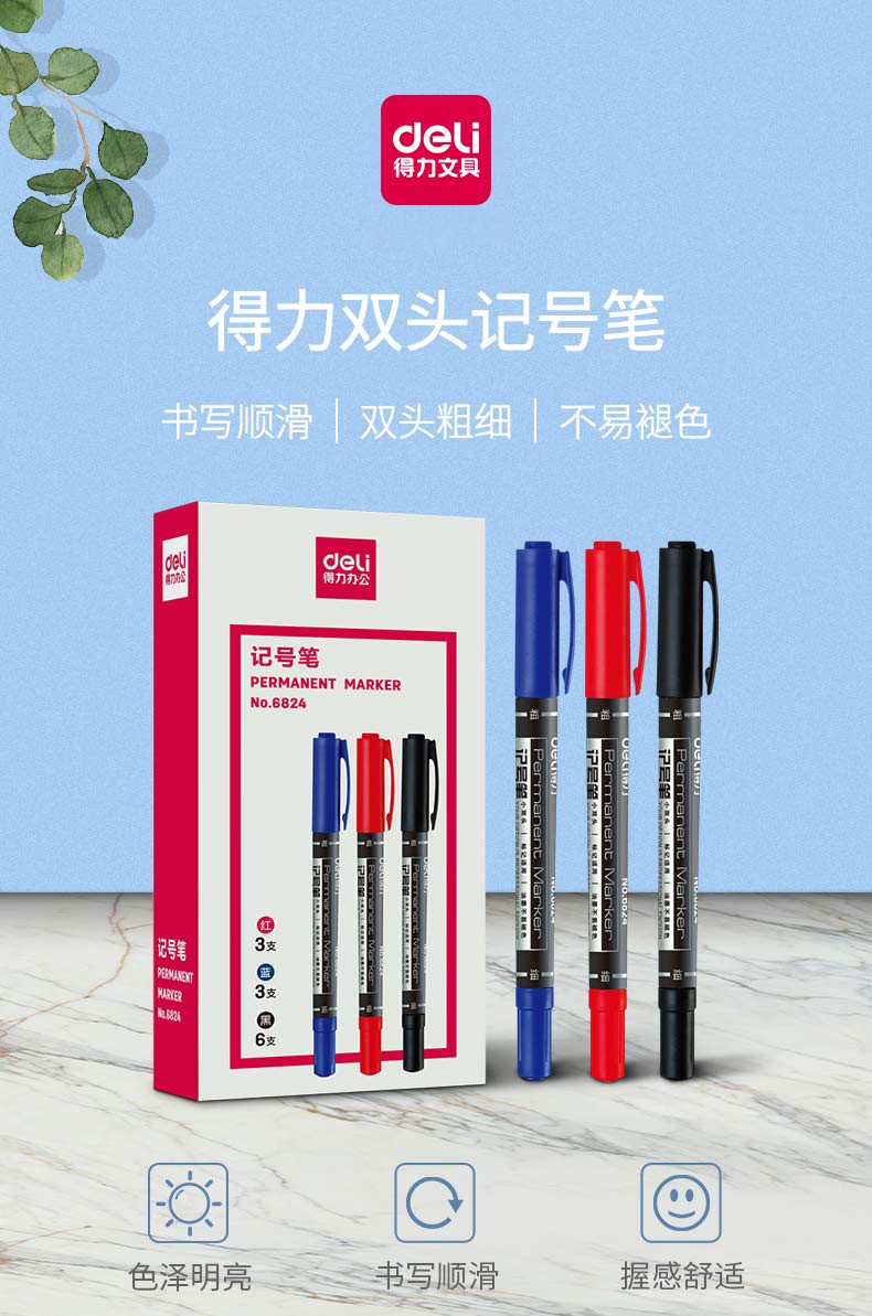 得力記號(hào)筆 6824 雙頭多用油性記號(hào)筆 黑色 單位:12支/盒