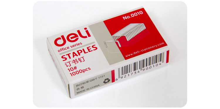 商品名稱:得力訂書針 得力0010 10# 統(tǒng)一訂書針 小號(hào)訂書釘 10盒裝