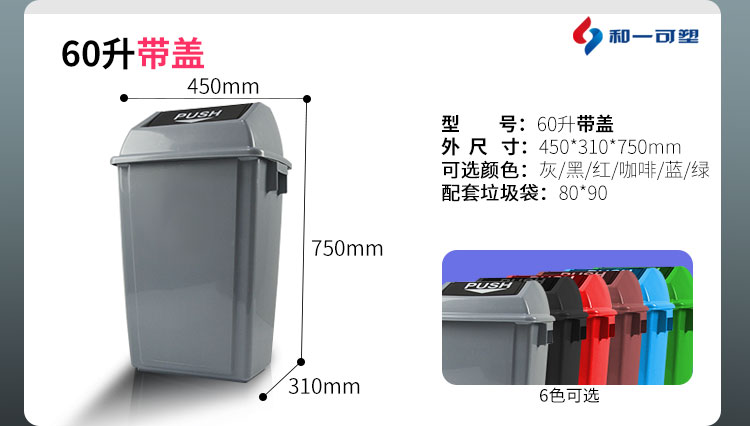 和一 20L搖蓋 綠色 垃圾桶 彈蓋酒店廚房分類垃圾筒箱戶外帶蓋204060L長方形干濕分離 單個裝