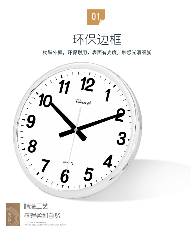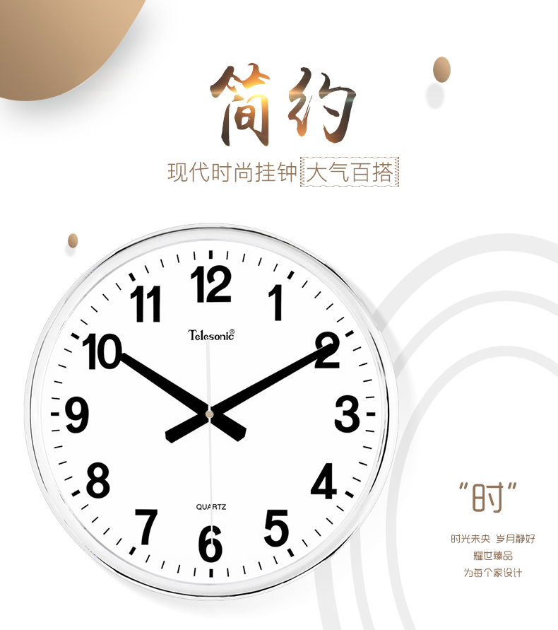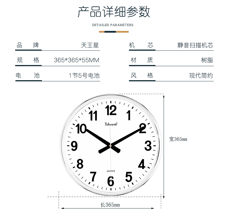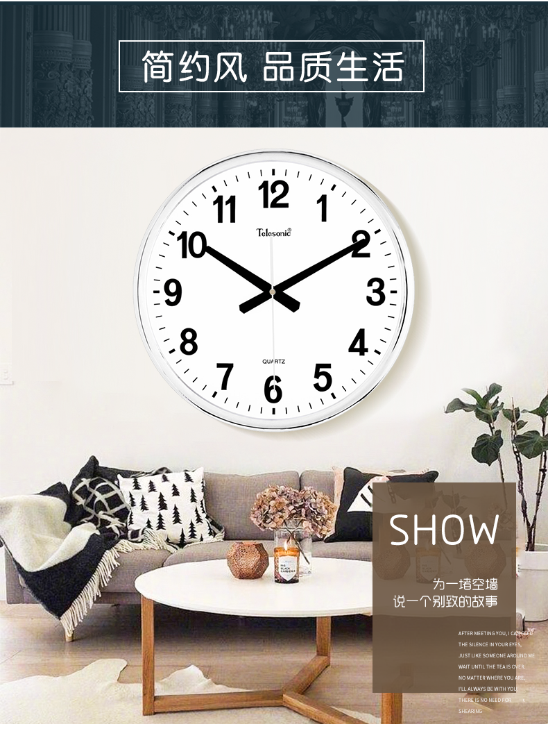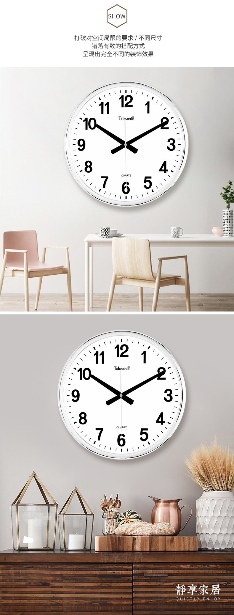 天王星 現(xiàn)代簡約圓形掛鐘靜音時(shí)鐘時(shí)尚石英鐘 S332 銀色 14英寸 單位:個(gè)