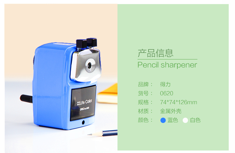 商品名稱:得力0620 金屬外殼削筆機 (灰/藍隨機)