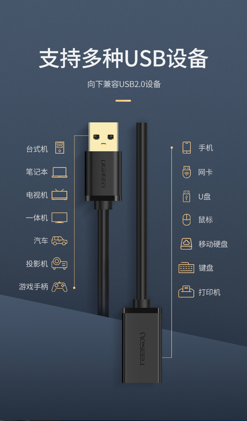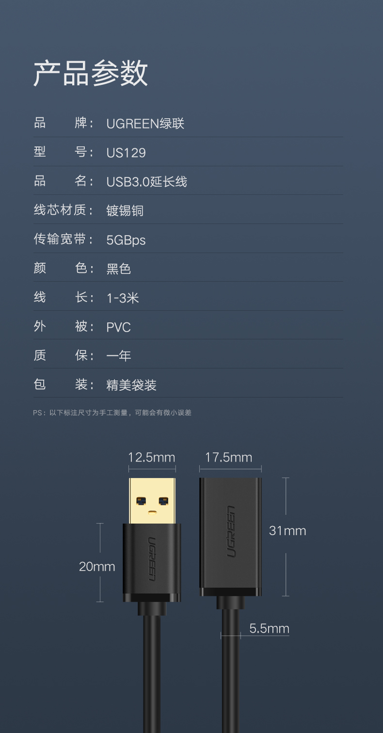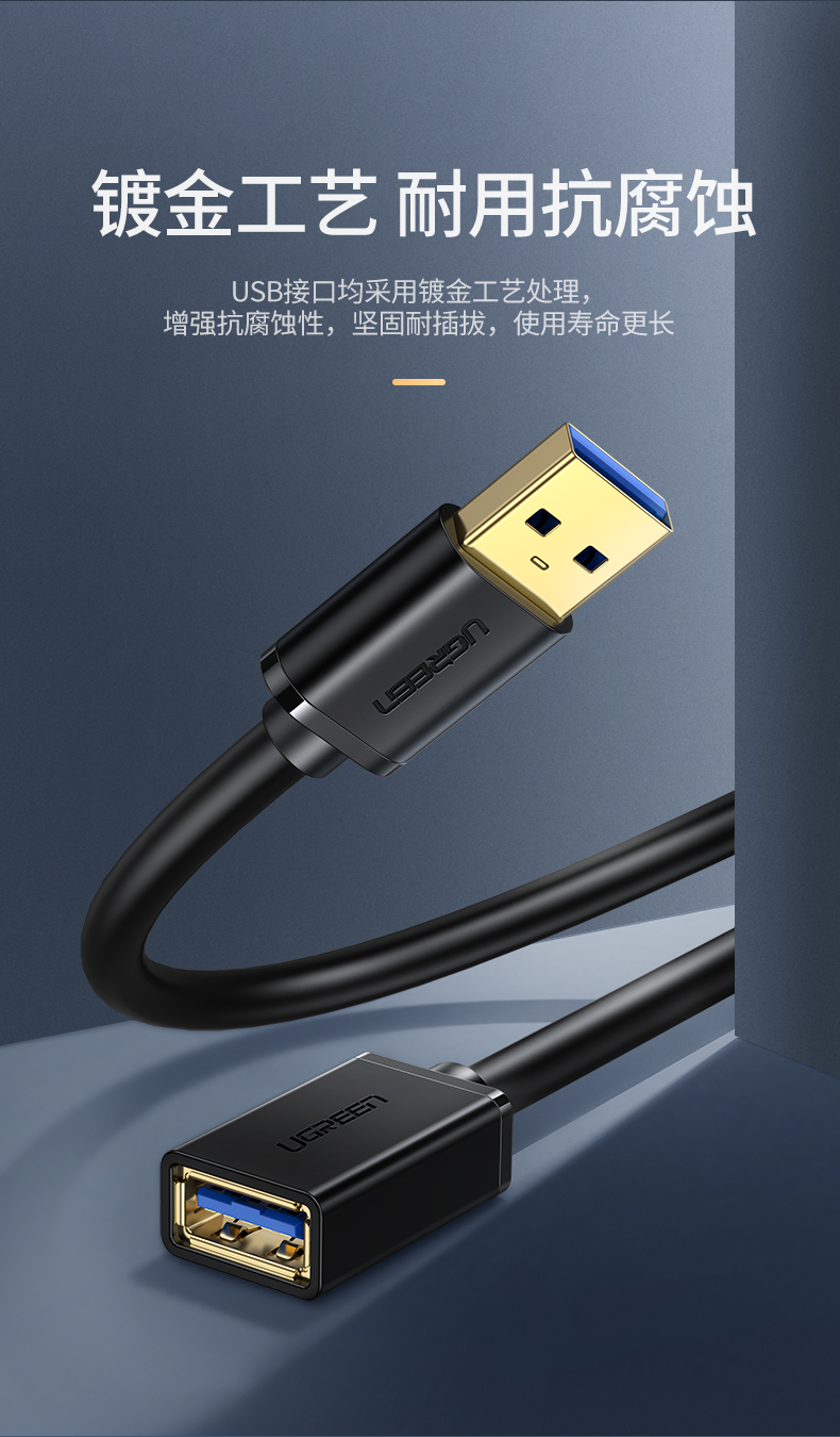 綠聯(lián) US129 USB3.0延長線公對母鍍金頭 高速傳輸數(shù)據(jù)連接線 2米 黑色 單位:根