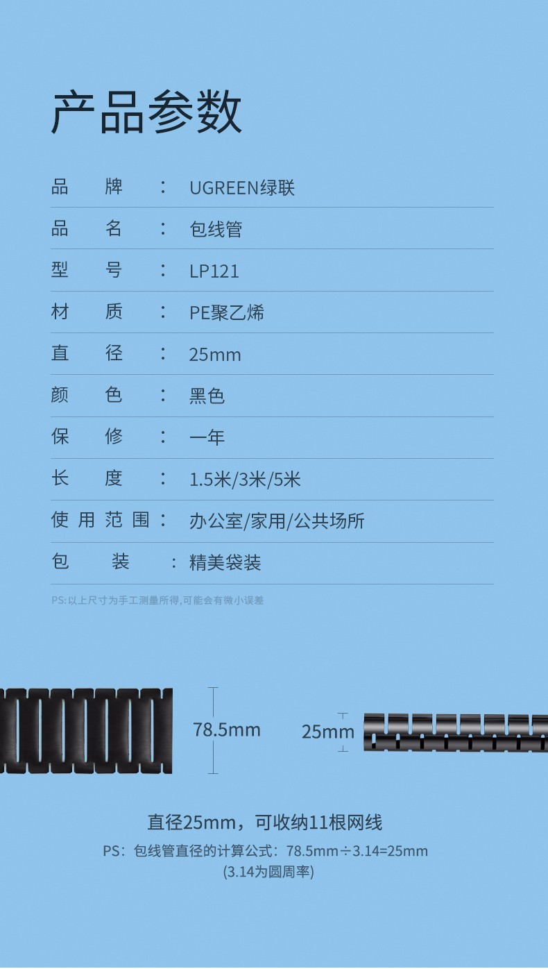 綠聯(lián)理線器 LP121 固線夾纏線器 引線款 包線管直徑25mm 黑色 5米 單位:包