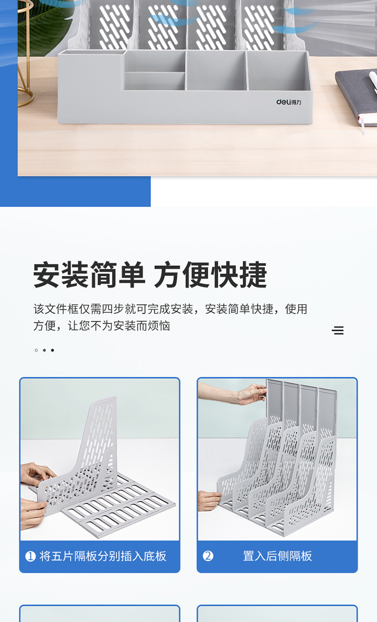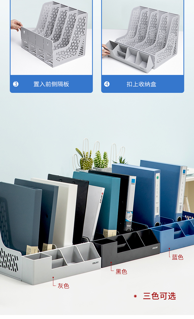 得力資料筐 78981 四聯(lián)帶筆筒文件框多功能資料筐 灰色 單位:個