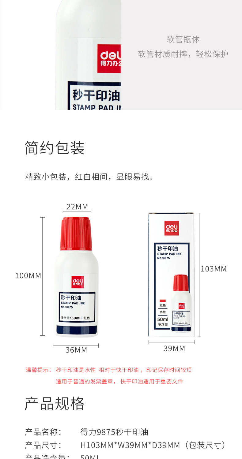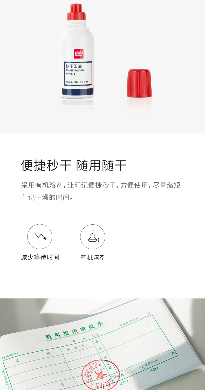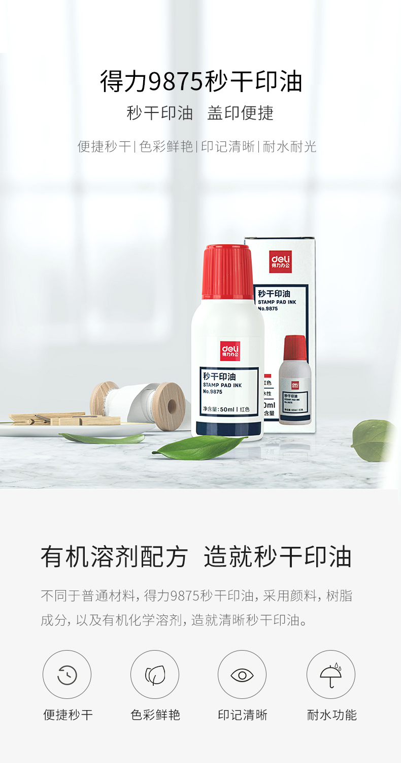 得力 9875 財(cái)務(wù)專用印油40ml快干清潔印泥油 紅色 單位:個(gè)