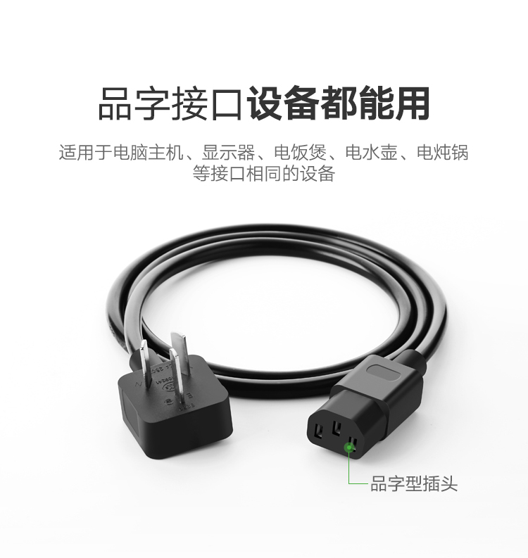 綠聯(lián) CD133 電腦主機(jī)電源線國標(biāo)三孔品字尾通用 1米 黑色 單位:個(gè)