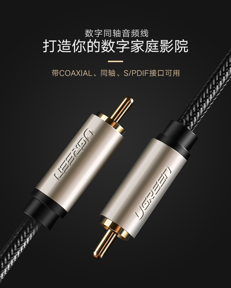 綠聯(lián) AV133 RCA蓮花頭數(shù)字同軸線音頻線公對公轉(zhuǎn)接線SPDIF音響箱功 3米 黑色 單位:根