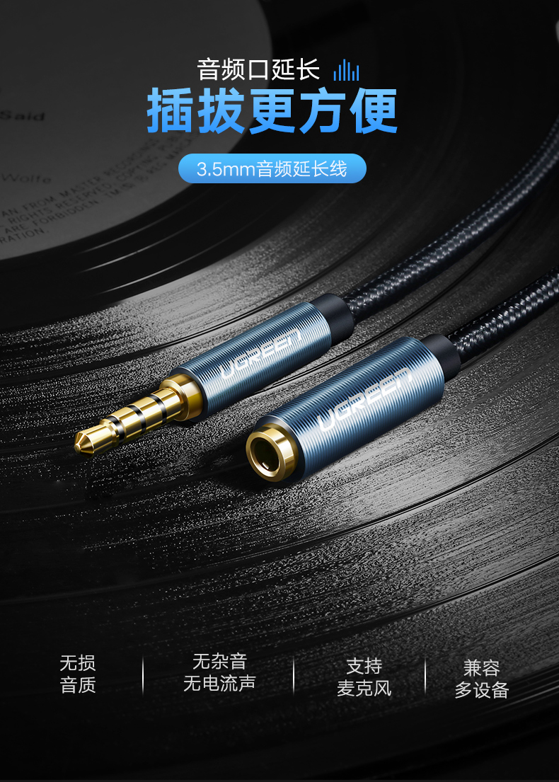 綠聯(lián) AV118 3.5mm音頻線公對(duì)母 轉(zhuǎn)接AUX車載音響箱加長(zhǎng) 3米 灰色 單個(gè)裝
