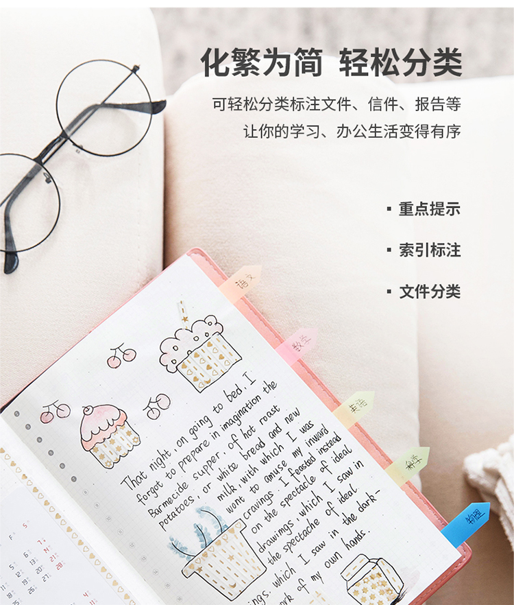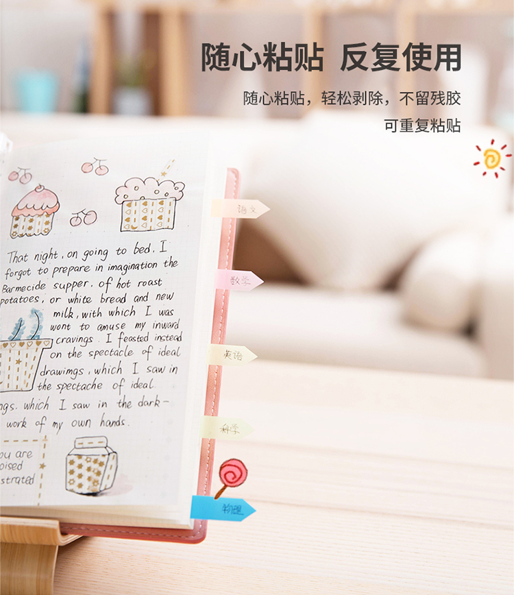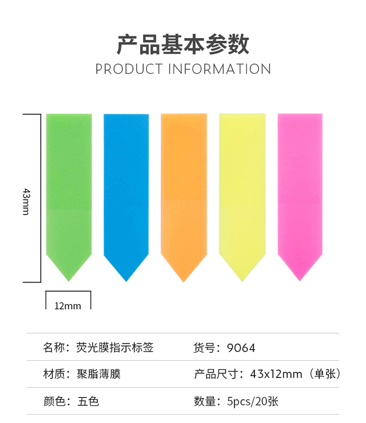 得力 9064 43*12mm5色熒光膜指示標(biāo)簽貼 單位:100張/包