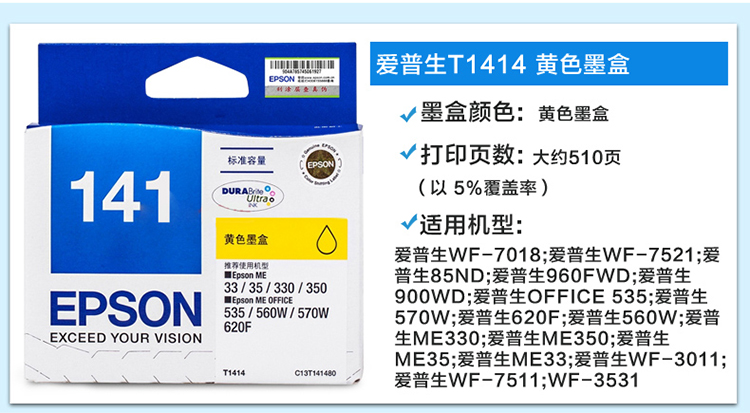 愛(ài)普生墨盒T1414 黃色墨盒 適用me33 ME35 ME330 ME350 620F 單位:支