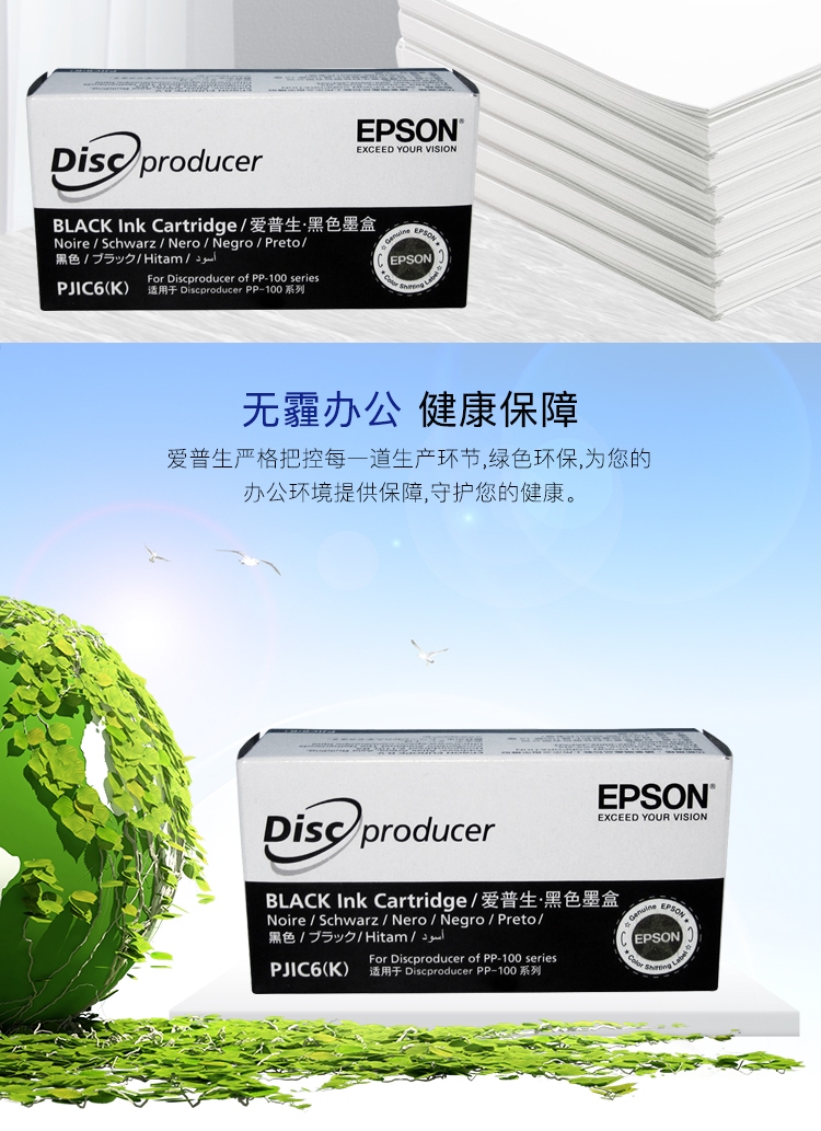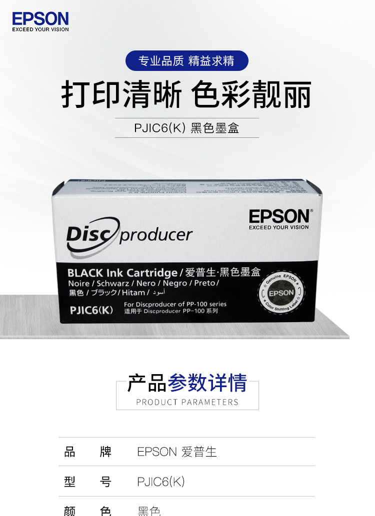 愛普生墨盒 PJIC6 黑色墨盒 (適用PP-100III/100N/50II系列光盤印刷刻錄機(jī)) 單位:支
