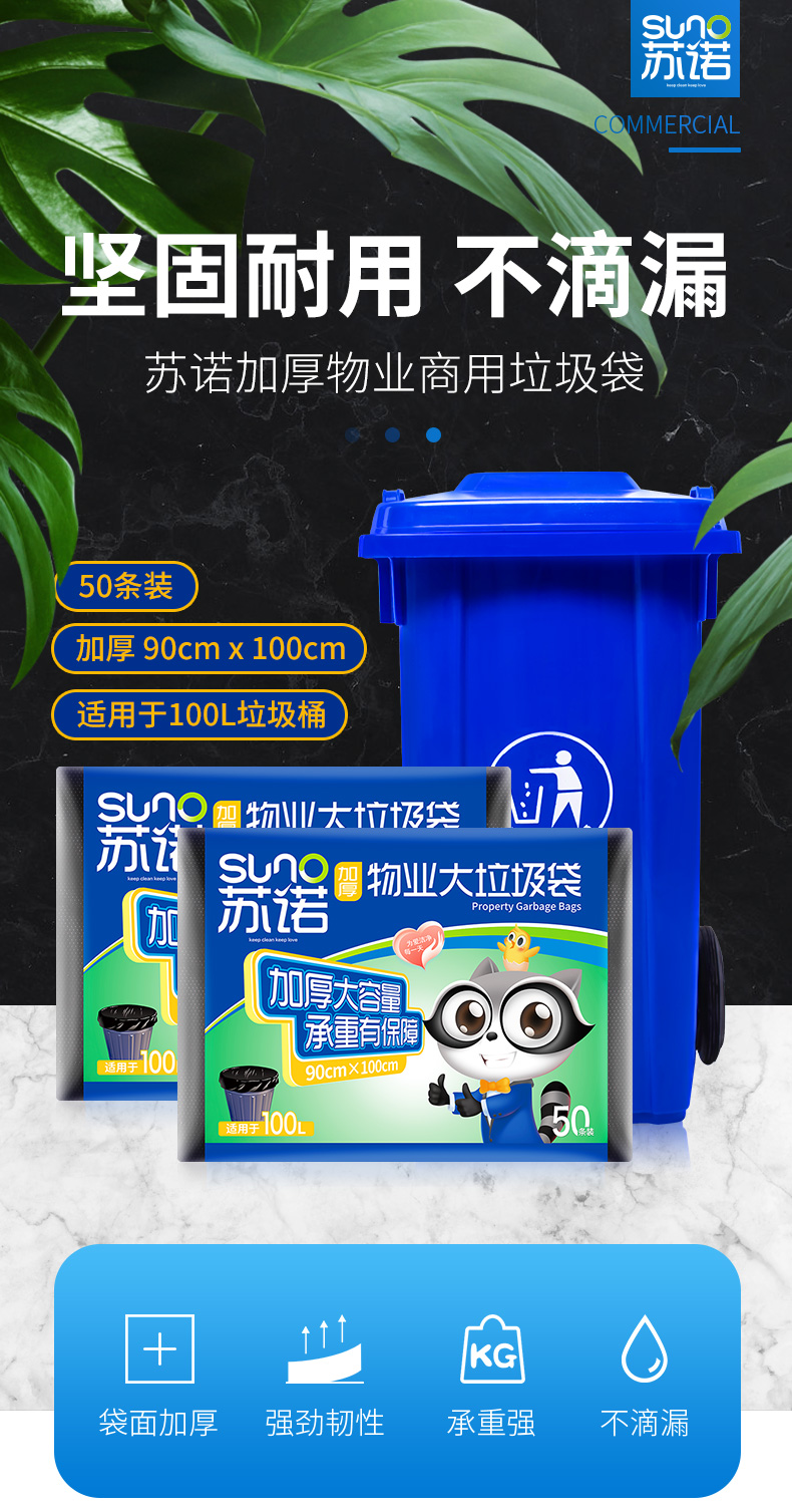 一順 90*100cm 垃圾袋大號平口加厚黑色家用廚房清潔袋桶用 垃圾分類 50只裝平裝