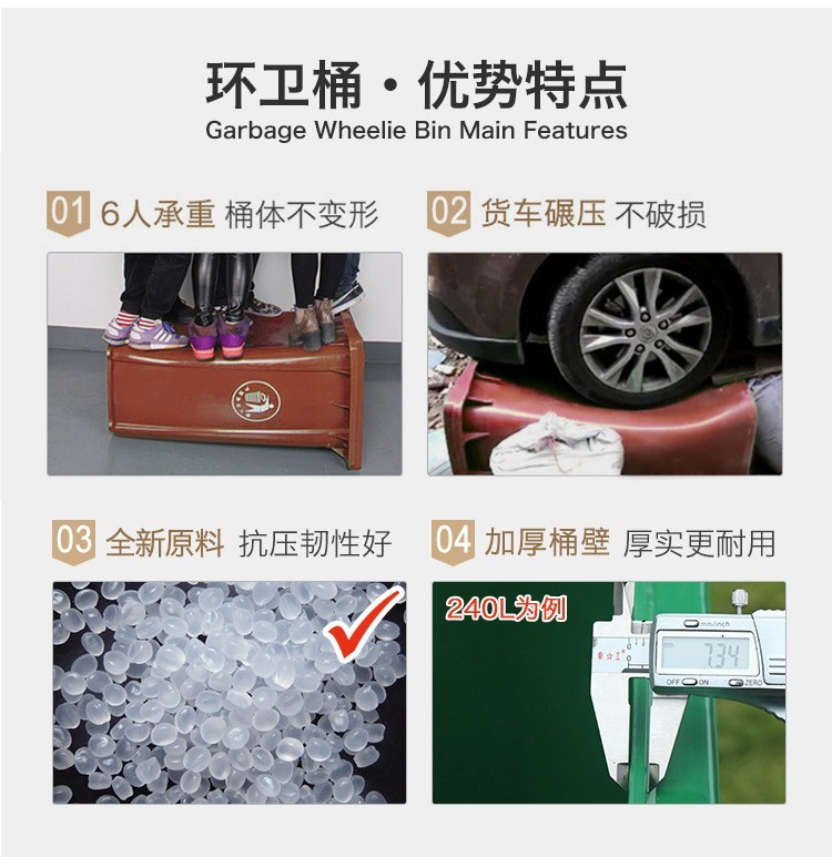 納麗雅 100L帶輪 黑色 干垃圾桶 物業(yè)環(huán)衛(wèi)垃圾分類商用帶蓋分類垃圾桶果皮箱 單個裝