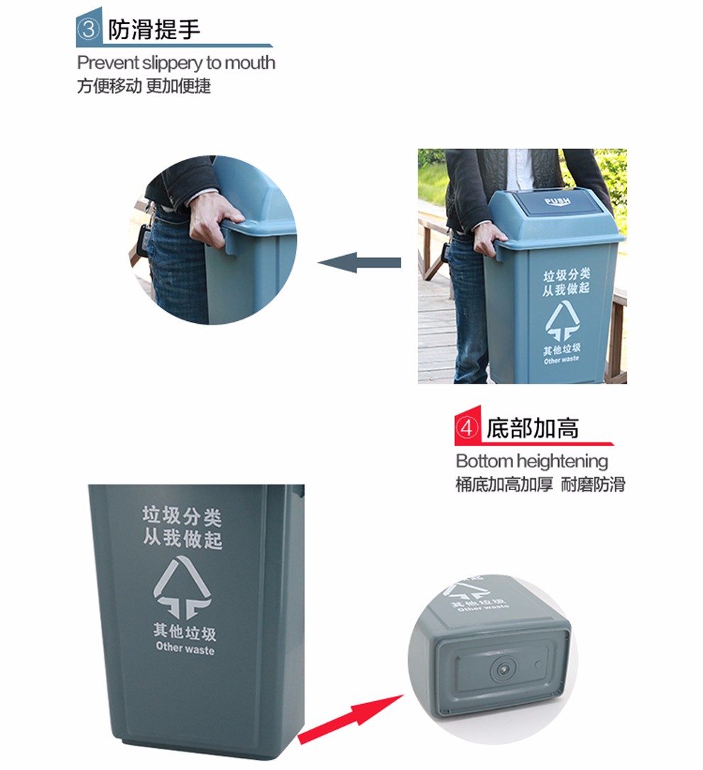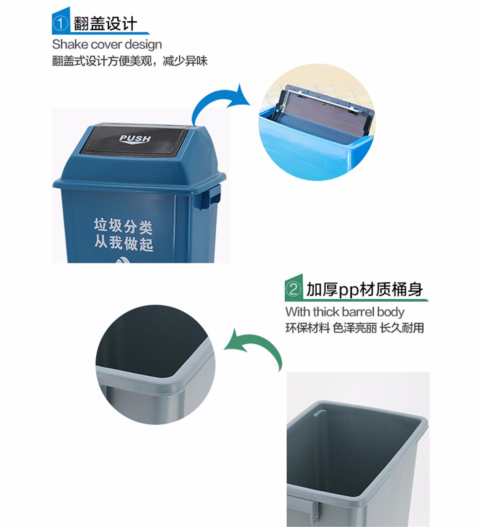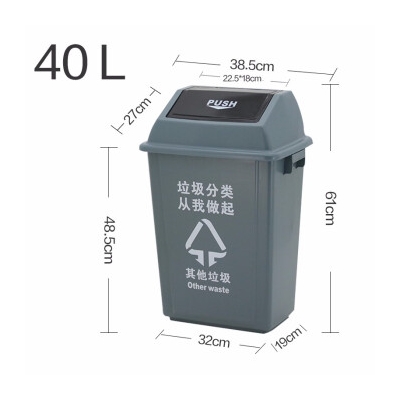 科靈 40L搖蓋 灰色 其他垃圾分類垃圾桶帶蓋 飯店餐飲可回收廚余環(huán)衛(wèi)有害戶外四分類 單個裝