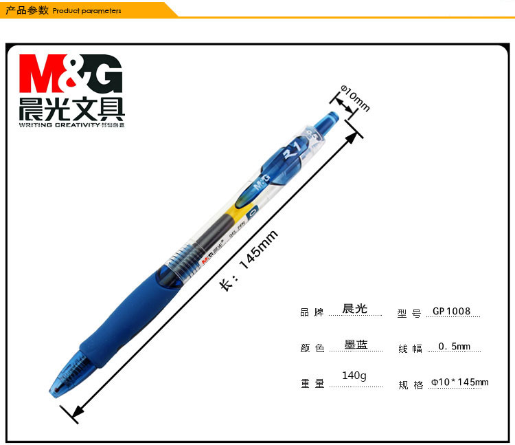 晨光 GP-1008 0.5mm 按動(dòng)子彈頭簽字筆 藍(lán)黑色 12支/盒