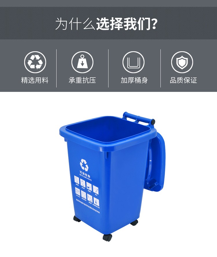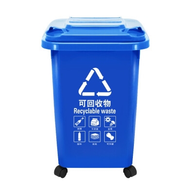 蘭詩 50L帶輪 藍(lán)色 可回收垃圾桶 物業(yè)環(huán)衛(wèi)垃圾分類商用帶蓋分類垃圾桶果皮箱 單個裝