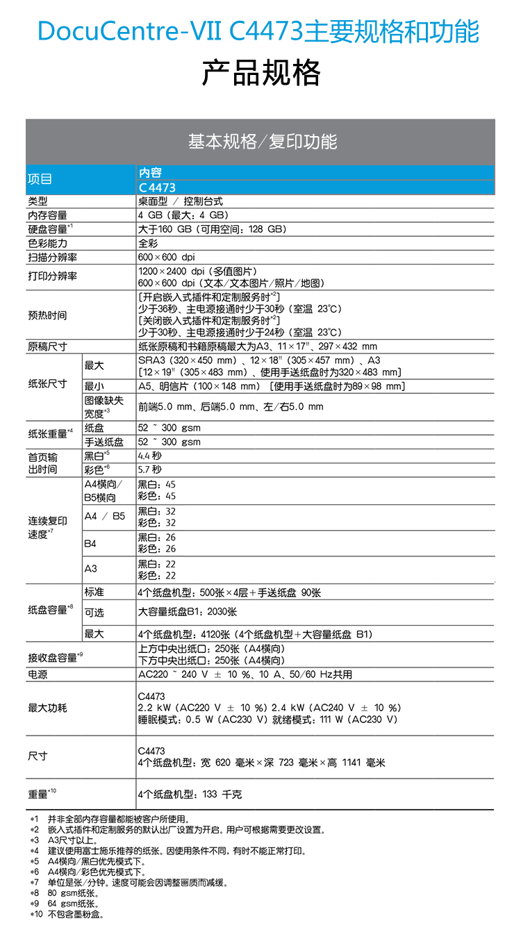 富士施樂(lè)復(fù)印機(jī) DocuCentre-VII C4473 CPS SC 彩色激光復(fù)印機(jī) 單位:臺(tái)