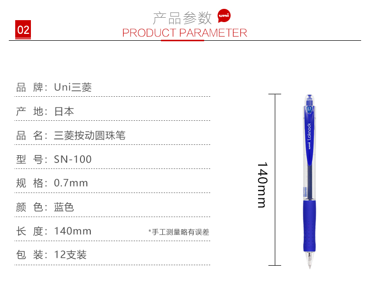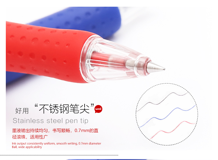 三菱 SN-100 0.7mm按動(dòng)圓珠筆辦公用原子筆 藍(lán)色 12支/盒